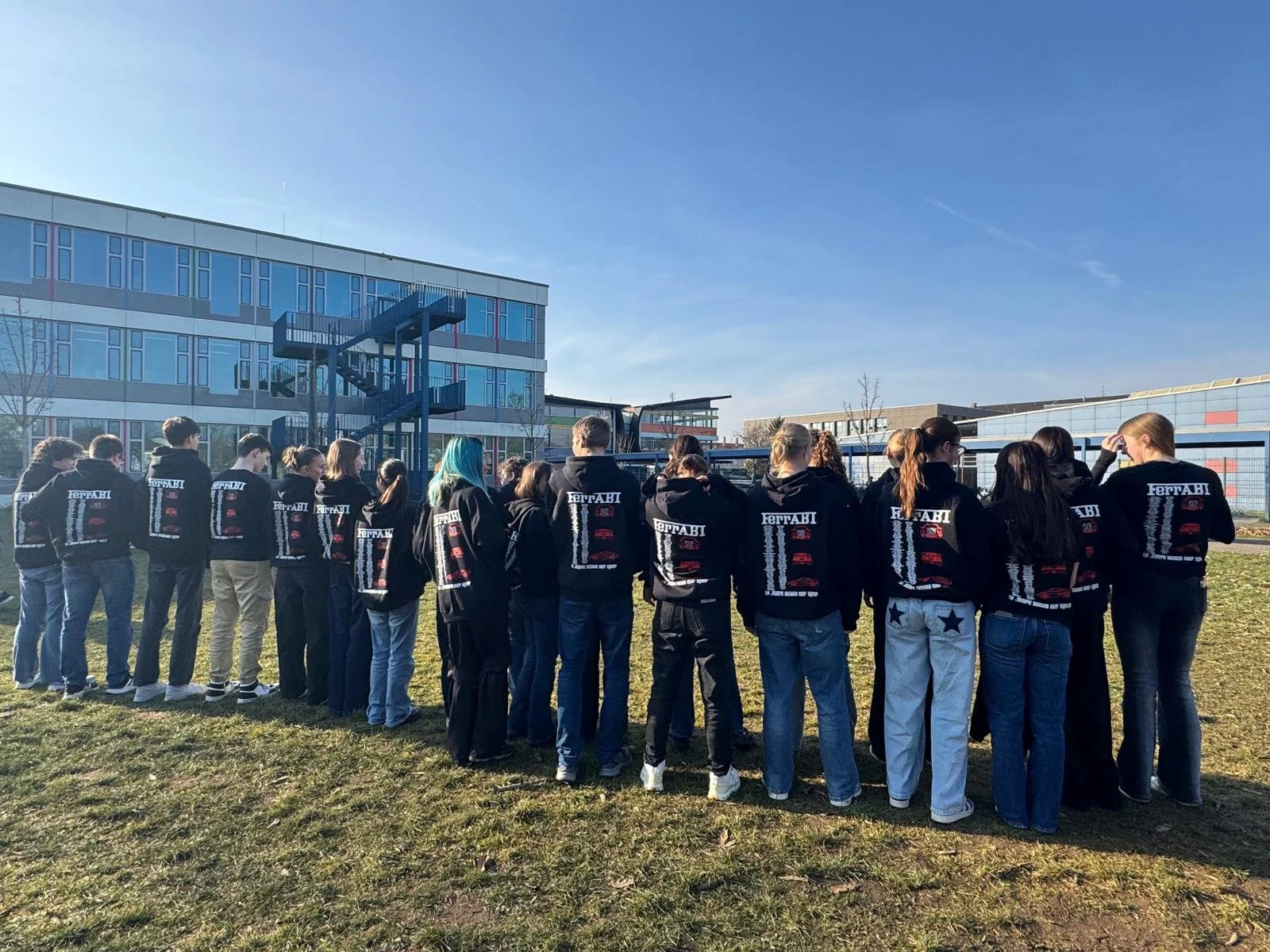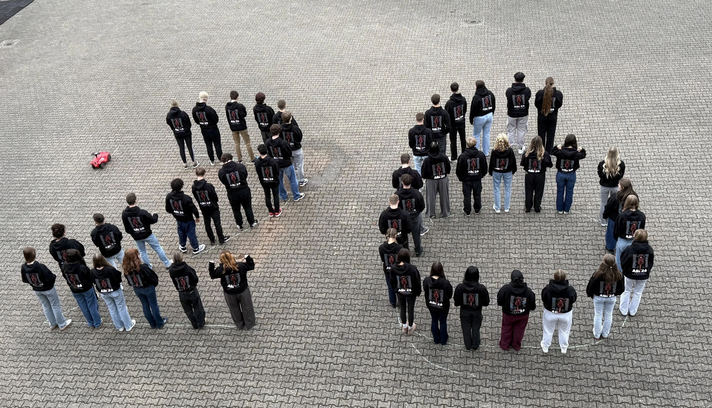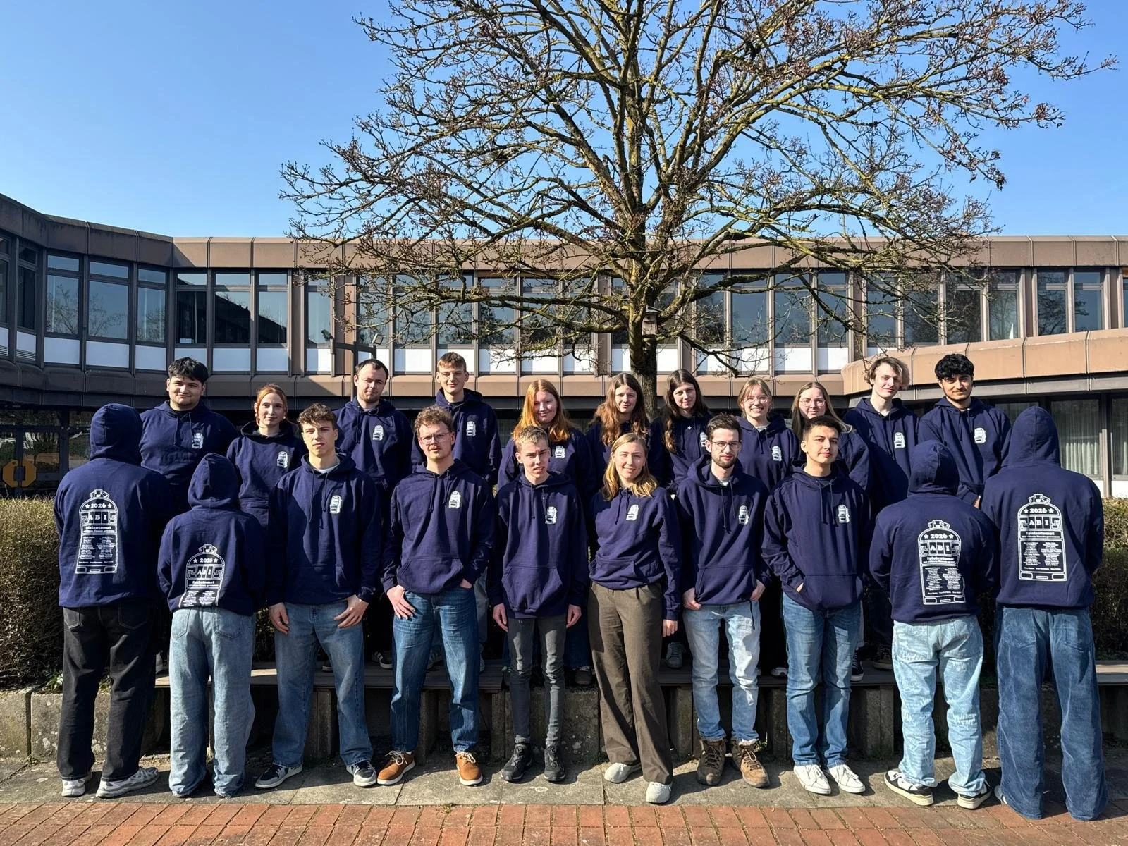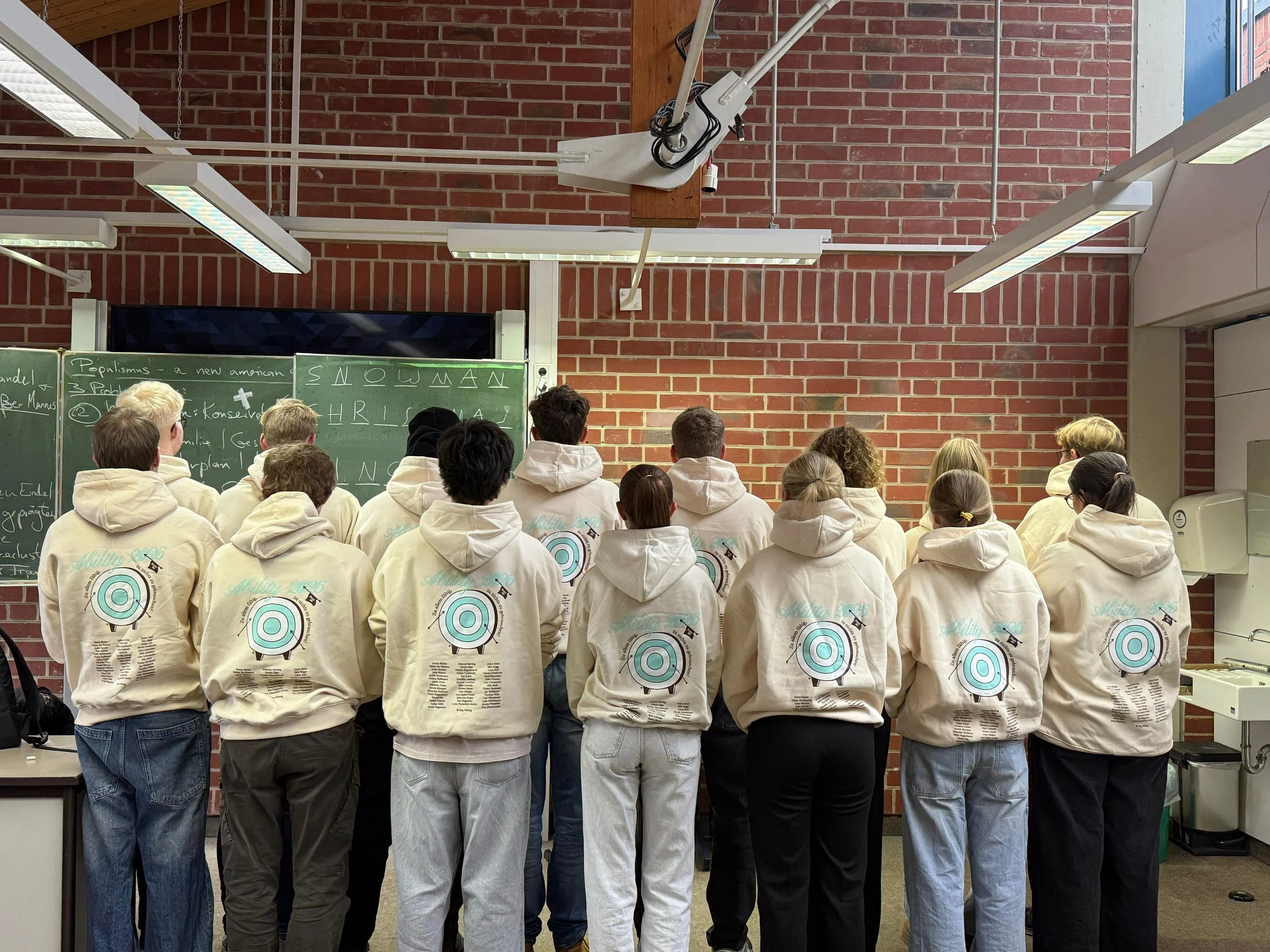 Dieses Motiv passen wir nach euren Wünschen an, zum Beispiel mit Jahrgang, Text oder Farben.Anschließend entscheidet ihr euch für die Modelle (z. B. Hoodies oder Shirts) und sammelt die Größen in eurer Stufe.