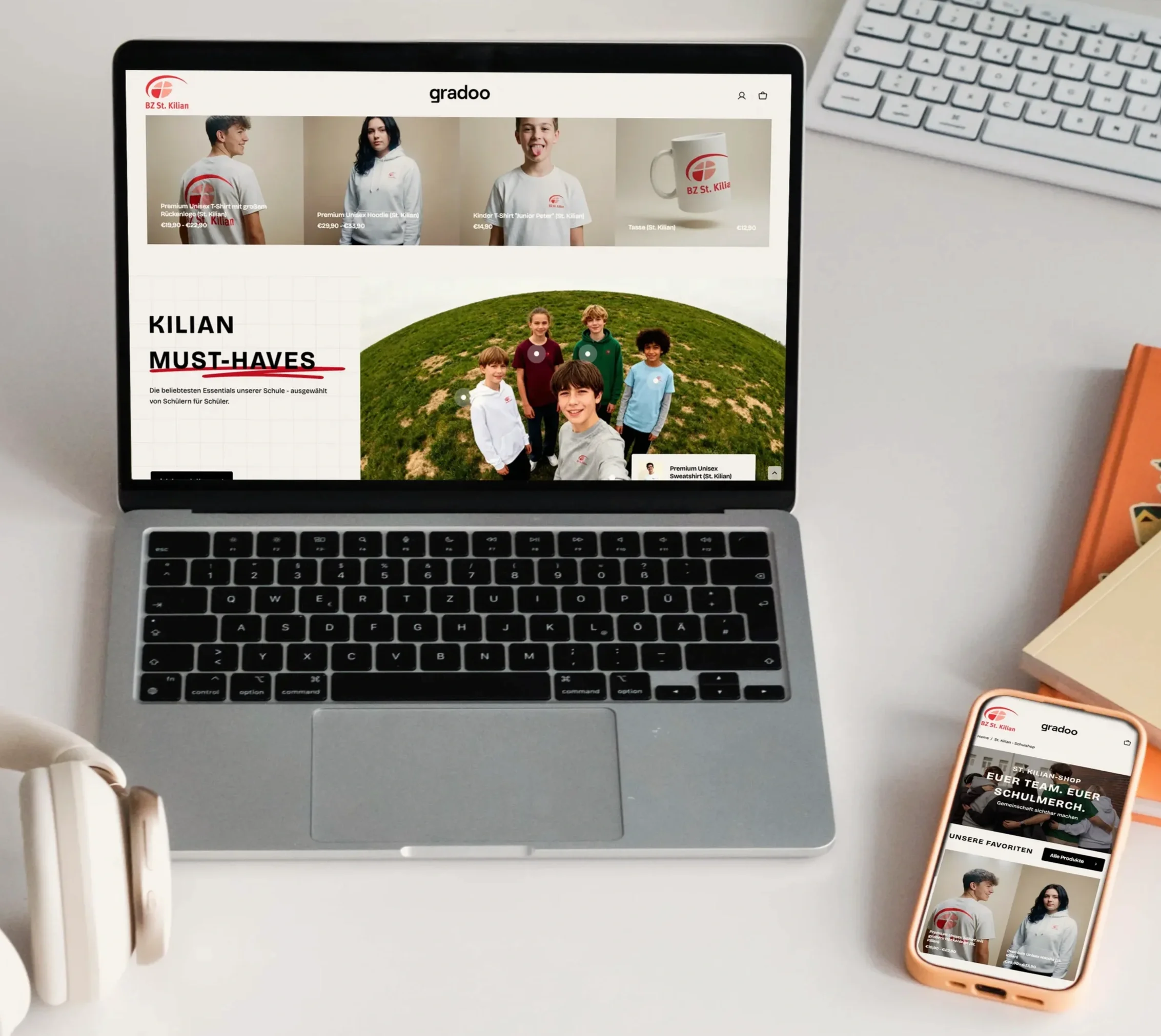 Mit dem Gradoo Schulshop können Sie Schulkleidung und weitere Produkte anbieten und gleichzeitig Einnahmen für Ihre Schule oder Ihren Förderverein erzielen. Wir übernehmen Erstellung, Abwicklung und Versand. Von jeder Bestellung im Schulshop fließt ein Anteil an Sie zurück und kann für schulische Projekte oder Anschaffungen genutzt werden.